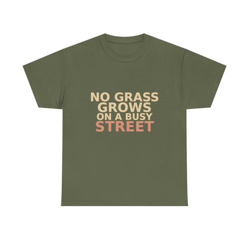 T-Shirt — "No Grass Grows on a Busy Street" Retro Quote Tee